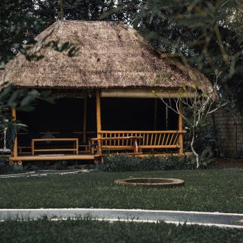 На территории нашего центра есть просторная йога-шала (45 м²) для занятий и тренингов, место для костра, небольшая кухня со столовой, амфитеатр в джунглях.