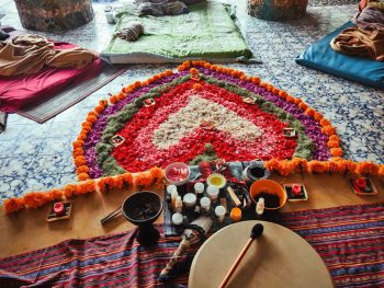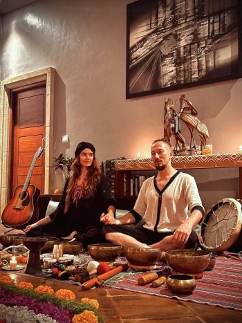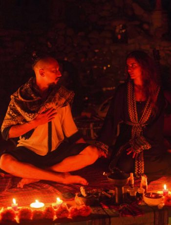During the night, healers perform soundhealing (sound therapy) using Tibetan singing bowls. This allows the participant to immerse themselves in their internal processes as comfortably as possible and live them. Special healing songs are also sung to the guitar and the sounds of a shaman tambourine.