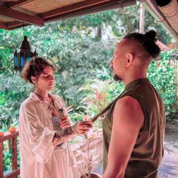 - Guided meditation at the beginning and end of the session. Entering and exiting an altered state